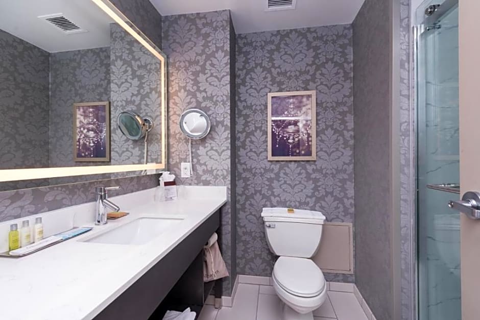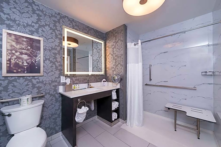 1 Queen Mobility Hearing Accessible Roll In Shower.